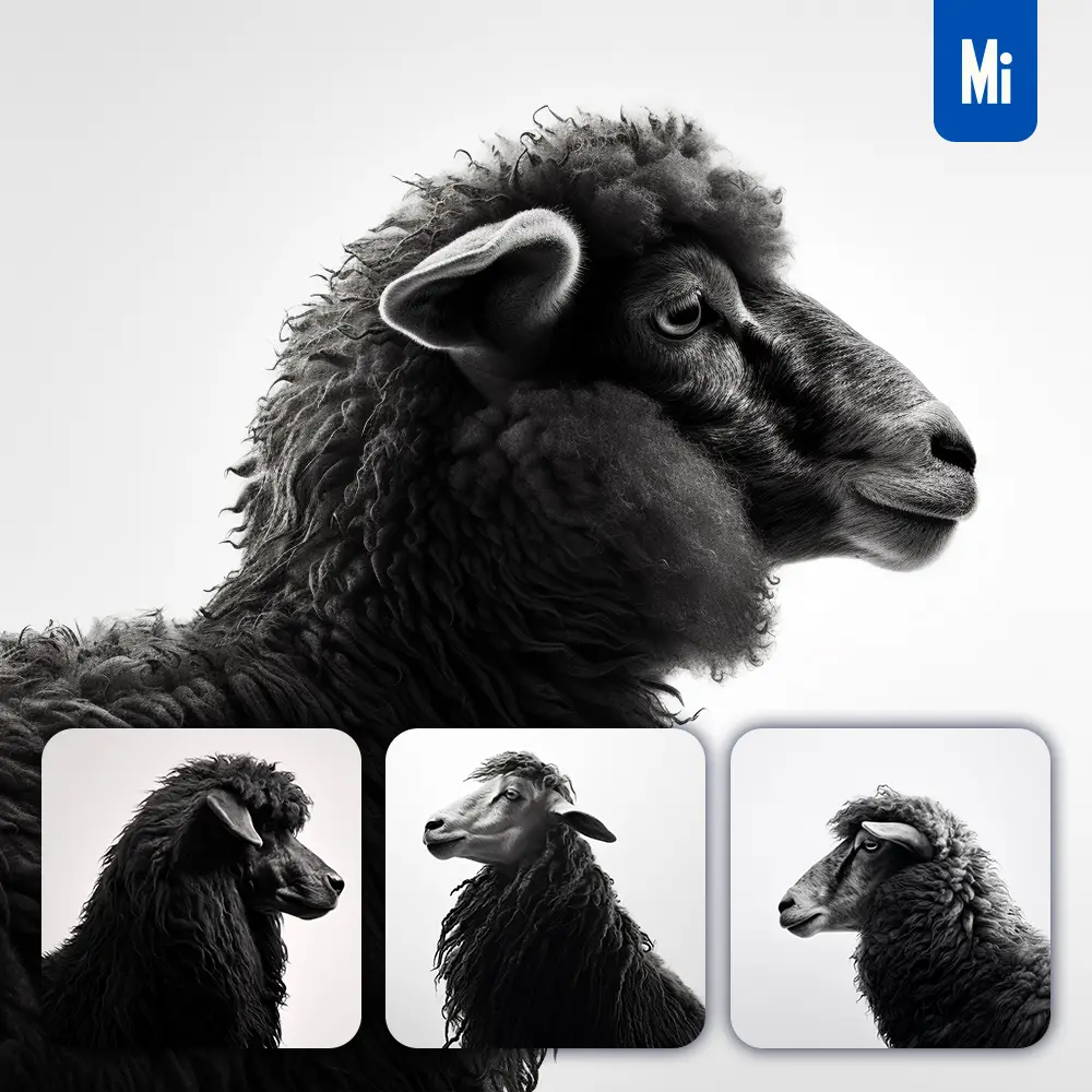 Midjourney Prompt Sheep Black Photography Face Head Silhouette